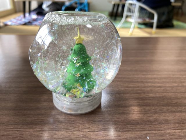今回の工作は、クリスマスに向けてママにスノードーム。