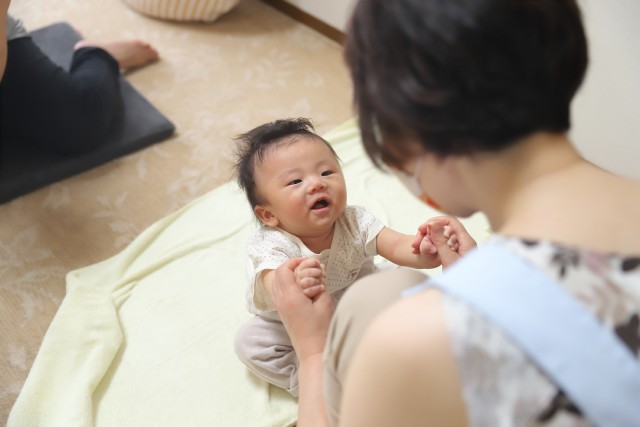 うつ伏せなども、ママの目の前で実践してやり方を覚えてもらいます。