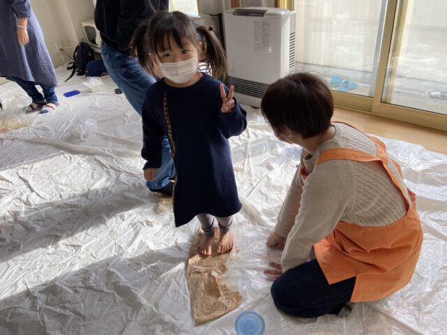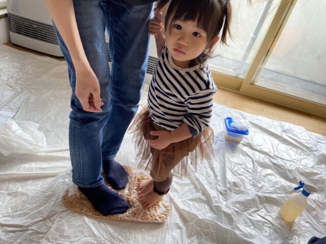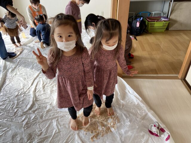 最近恥ずかしがりに磨きがかかり、ママと一緒じゃないと豆も踏めないって(笑)