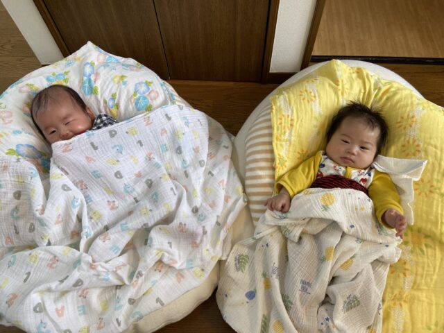 さて、本日はあきくん(写真左)とかいくん(写真右)がママと産後ケアをご利用中。