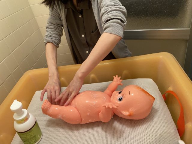 赤ちゃんのおむつ交換や、お着換え、シャワー沐浴体験ができます。
