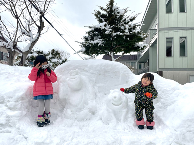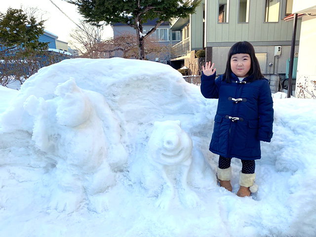 今回3回目となったひとり雪まつりは、子供たちの笑いが増えますようにと願いをかけてモンスターズインクのキャラを作りました。