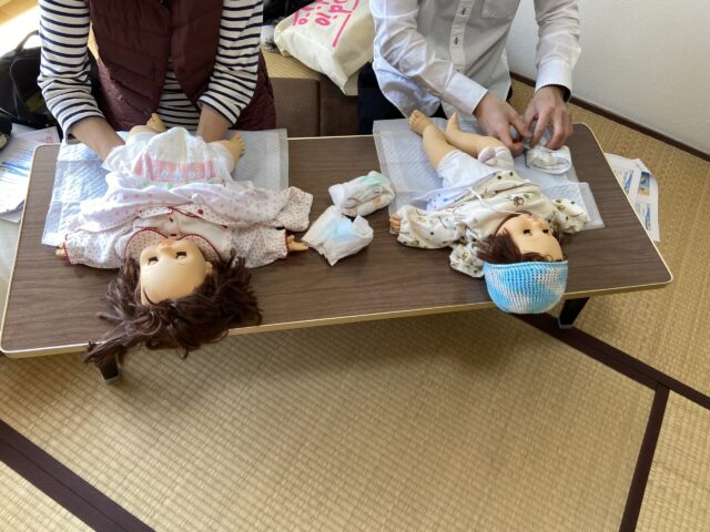 赤ちゃんのお世話を一緒に練習することで、より具体的にイメージしてもらえたらいいなぁと思っています。