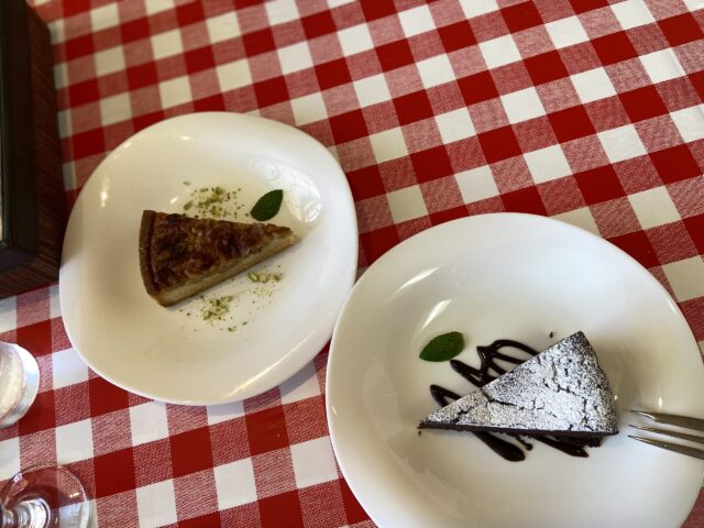 コチラのランチコースはドルチェ付きで、奥がさとちゃんのクルミのケーキで、手前がわたしのクラシックチョコレートケーキです。