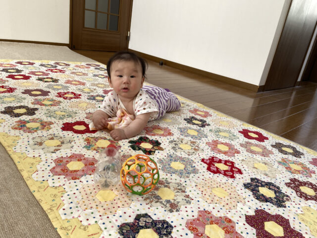 寝返りはお手のものだし、ずりばいでどこまででも行っちゃうアクティブ男子♪
