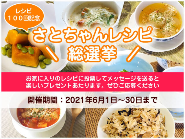 「これおいしかった~」「作ってみたら好評だった!」「献立に取り入れてみようかな!」などなど、過去のレシピを見返しながら色んな思いを巡らせて「さとちゃんレシピ総選挙」を楽しんでもらえたらいいなと思います(^^)