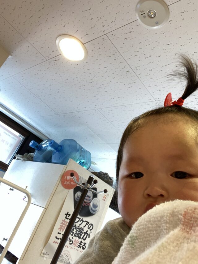 整骨院に着くなり号泣され、わたしの背中でおんぶ。
