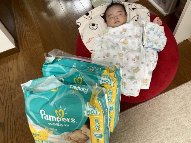 写真でもお分かりのように、あっという間に大きくなっておむつがサイズアウトしてしまったそう。