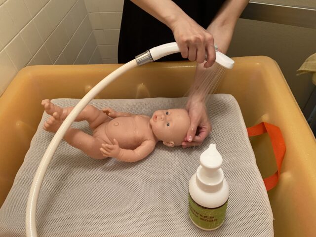 そして、赤ちゃんのお世話についての実践練習(といっても練習相手はお人形ですが・・)。