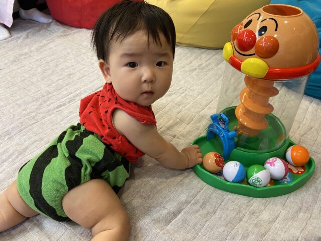コロコロできるようになったお子ちゃまは、マットの上でコロコロ・・。