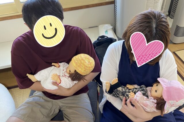 これから赤ちゃんを迎えるプレママ・プレパパに、産後のあかちゃんとの生活や赤ちゃんのお世話をイメージしてもらえるよう、少しの座学とたくさんの演習を行っています。