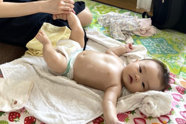 ママのマッサージが気持ちよかったのか、満面の笑みです。