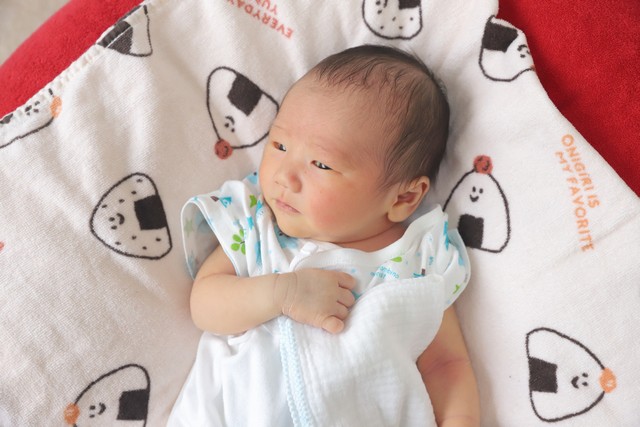新生児は、おっぱい飲んだら寝る・・の繰り返しのことが多いので、ほとんど寝顔しか見れません(笑)