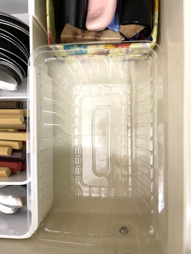 まずは、トレーを洗って乾燥させ、余ったスペースも無駄にはしませんよ~。