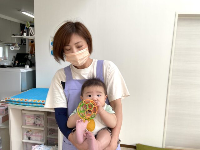 幸いえんくんには人見知りも場所見知りもなくさとちゃんと遊んでもらっている間にママのおっぱいケア。