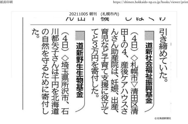 そこに、さらにさんさん助産院の想いをのせて、合計30,000円を北海道新聞社会福祉振興基金さまに募金しました。