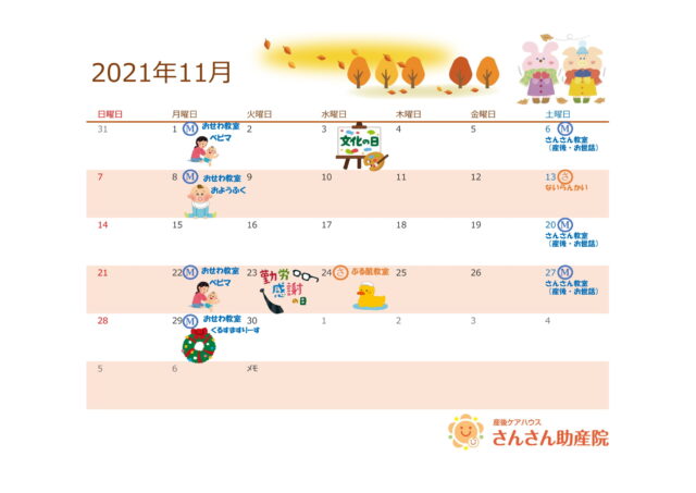 昨日のさんさんに引き続いて、今日はMOMMEでの11月のイベントをまとめてお知らせします♪