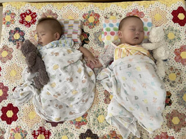 今日のさんさん助産院には引き続きTWINSがお泊り中。