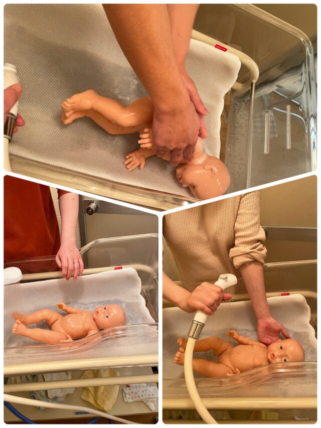 最後は赤ちゃんのスキンケアについて説明した後、シャワー沐浴体験♪