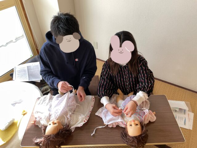 そして、お人形を使って赤ちゃんのお世話のシュミレーション。