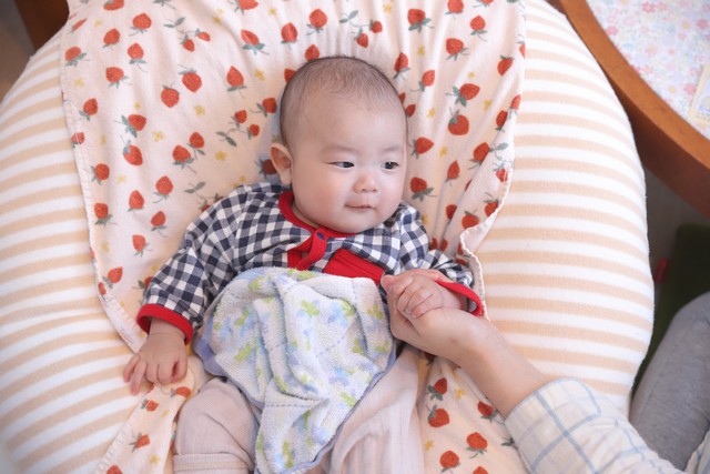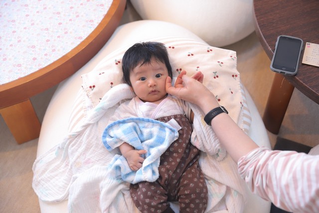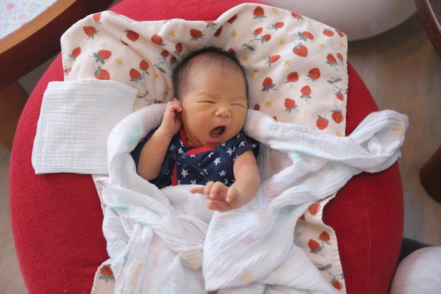 さんさんに来た時は産まれたてでむくんでいたけど、帰るときにはほっぺが少しぷっくりしてかわいさに磨きがかかっていました。