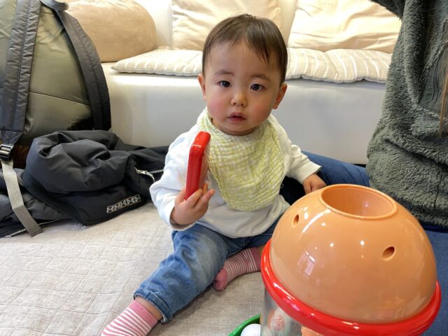 一時期はママがいないと泣いていたのですが、最近はおもちゃで遊びながらママを待ってくれるようになりました。