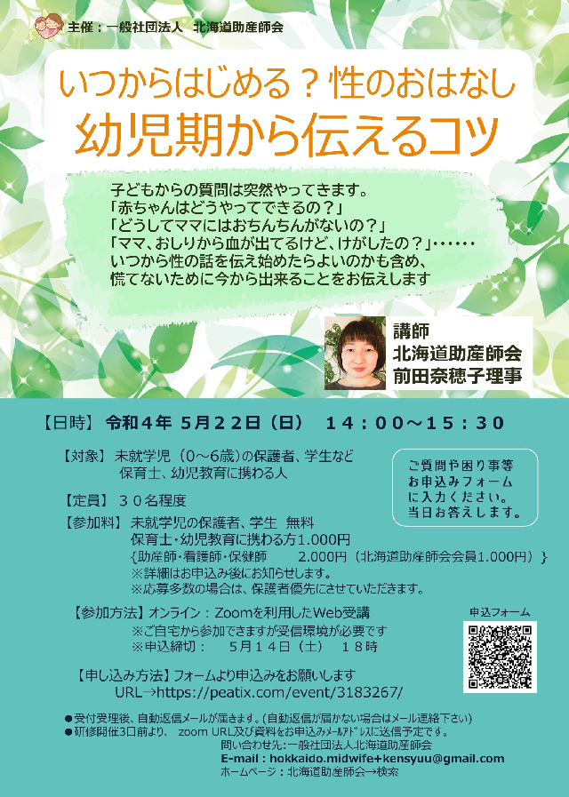さて、今日はわたしが所属する北海道助産師会が、小さなお子ちゃまをもつママ・パパ向けの講演会を開催するのでお知らせです。