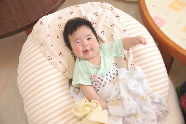 朝ごはんの後にママに遊んでもらってゴキゲン♪