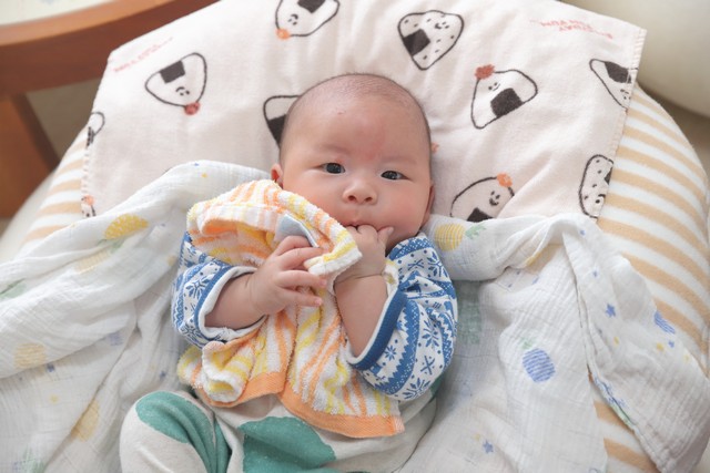 おっぱいのことは、かずくんの体重やママのおっぱいをみてお話。