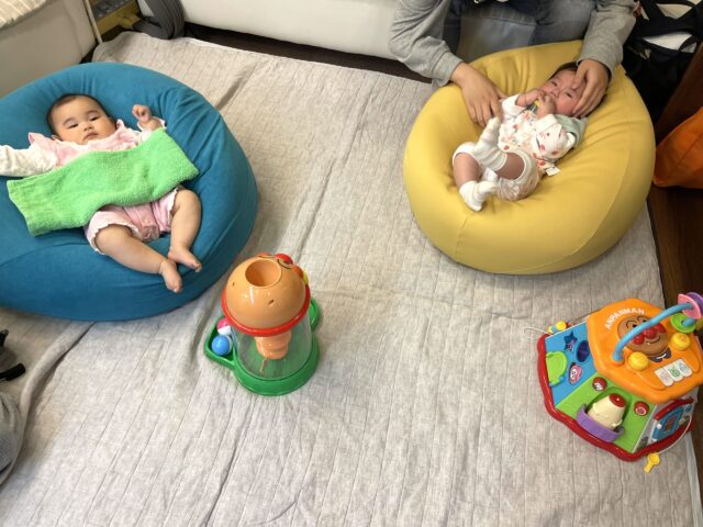 コチラのお2人はお座りもできちゃう月齢。