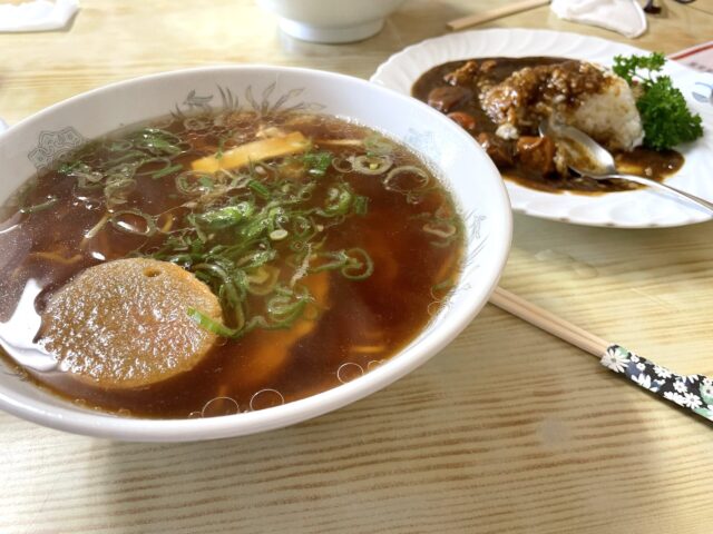 ラーメンはしょうゆ味で、お麩が入っている昔懐かしの味でした。