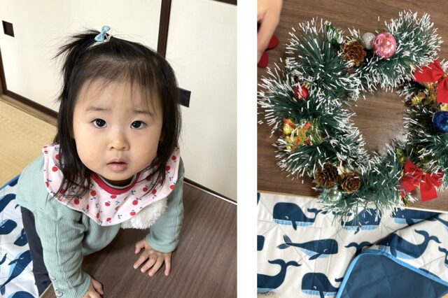 今週のテーマは、❝クリスマス準備をしよう!❞ということで、みんなでクリスマスリースを作ってみました♪