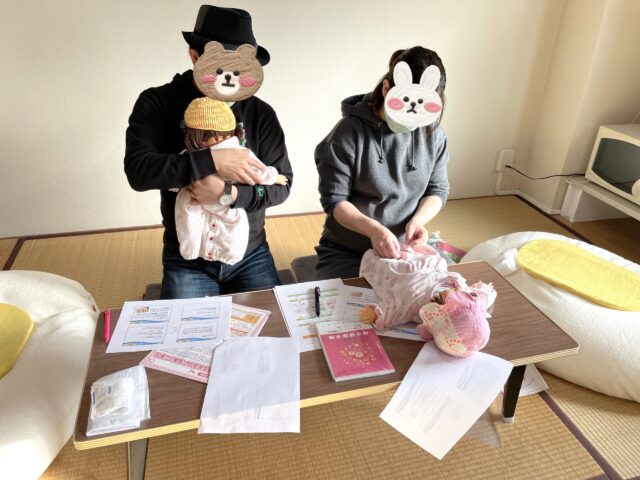 最初はちょっと緊張していた妊婦さんとご主人も、人形でもお世話をすることで自然と笑顔になってきます。