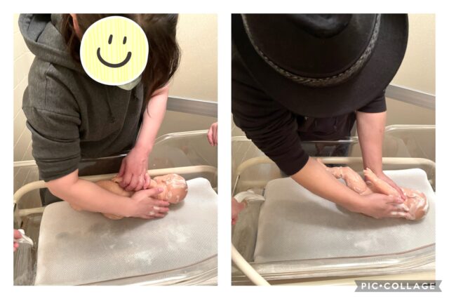その後は、お待ちかねの赤ちゃんのお世話の練習です。
