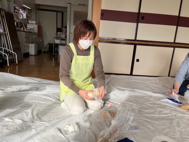 数年前から毎年このあたりにさんさんキッズにもお手伝いしてもらってママたちと一緒にお味噌を仕込んでいます。