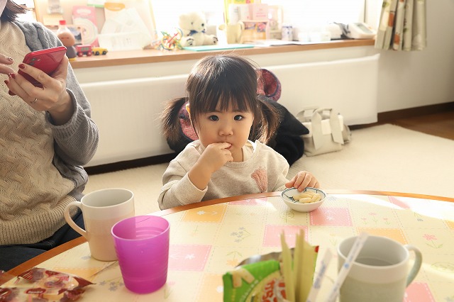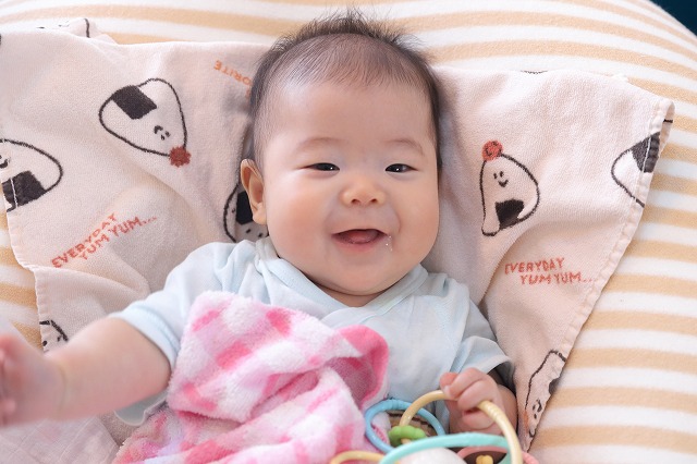 抱っこしてるときにおにぎりを作らないとならなかったので「そろそろいい?」って聞いたらゼッタイに目を合わせてくれないという(笑)