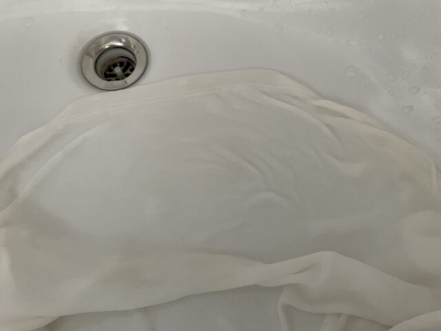 - 洗剤カスが残りやすいので、水で洗濯する場合はお湯である程度洗剤を落としてからにしましょう