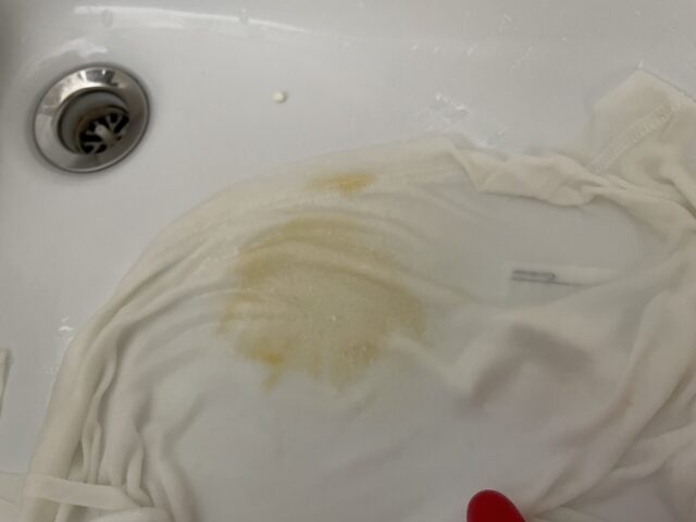 赤ちゃんのおむつ交換で、ついお洋服にウ〇チついちゃうことありますよね~。