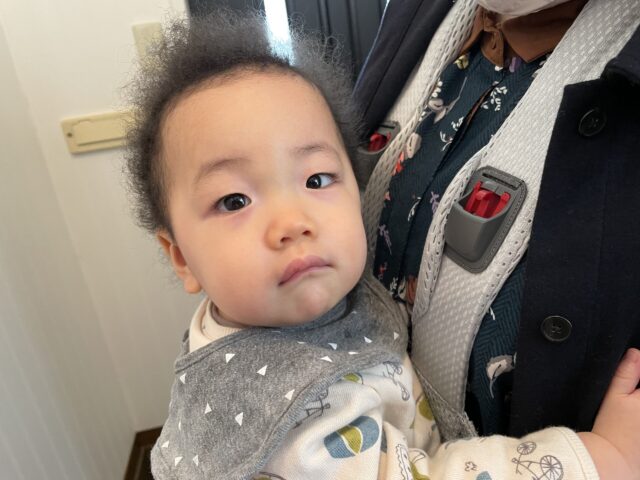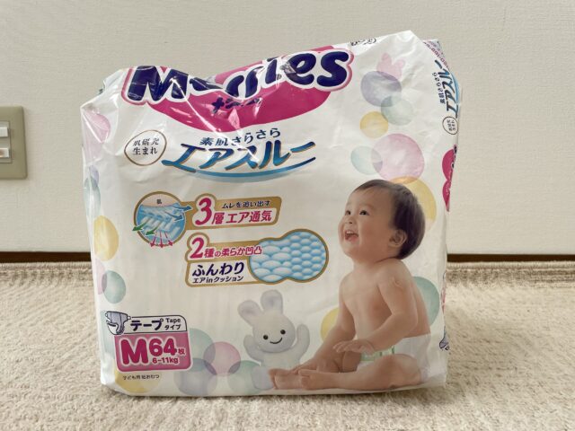 身体もくるくるの髪の毛もパワーアップした感じで、Mサイズのテープタイプおむつは卒業みたい。