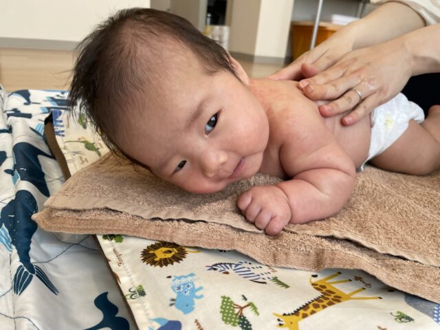 腹ばいで背中をマッサージするときも、しっかり頸あげられてます(*^^)v