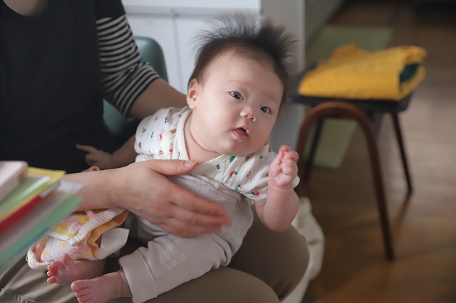 腹ばい運動も頑張って、ママも他のままとの会話も楽しみながら、2人ともご機嫌で2回目のご利用終了!(^^)!
