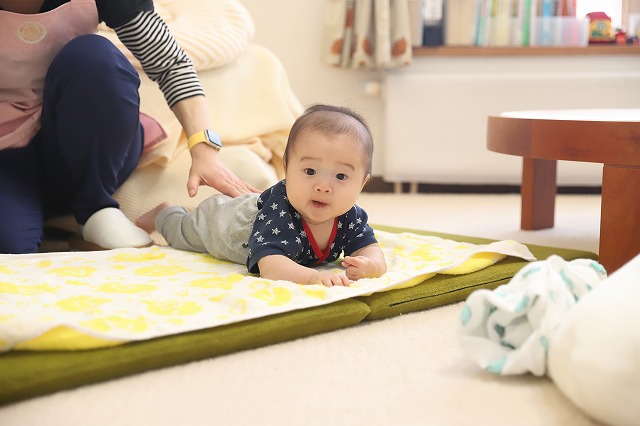 がっくんも体つきもしっかりしてきて、腹ばいもお手のものです。