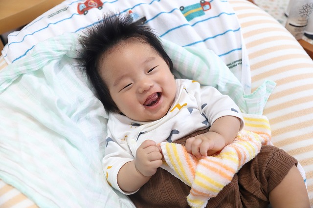 パイナップルヘアになり、手足はムチムチになり、笑顔もおしゃべりも増し増し↑↑のかーくん♪