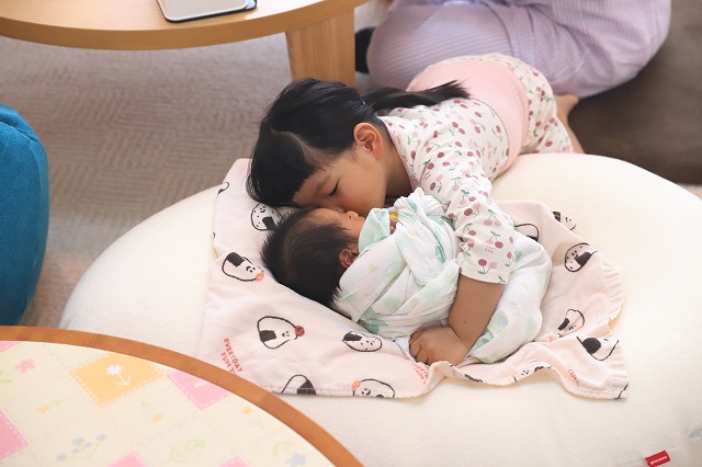 お姉ちゃんとの時間もとりつつ、夜はゆっくり休憩して、ママは少し元気になって1回目のお泊りは終了!