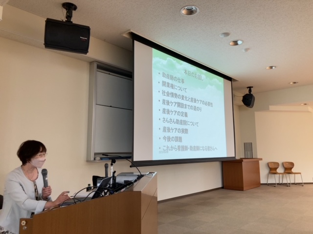 助産院での実習の代わりに、看護学生さん106名に講義形式で助産師のお仕事を学生の皆さんにお伝えしました。