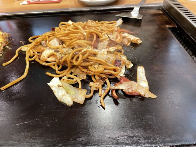 お好み焼きは好きで、家でも作って食べることがあるけど、鉄板で焼いていただくお好み焼きと焼きそばは格別でした~。