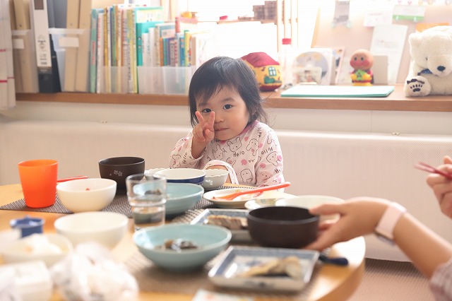 ママとお泊りに来てくれてごはんの時には、ママから食べ物の名前と匂いとかたちを教えてもらってました。