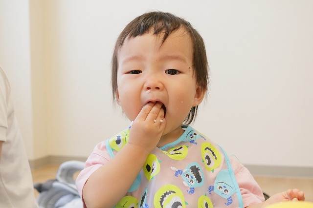 目は真剣そのもので、ママが口に運ぶと目でしっかりと追います。