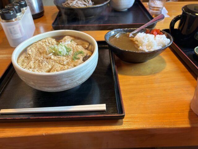 わたしは、卵とじそばとミニカレーライス(これは記録班とシェアね)をオーダーしました。