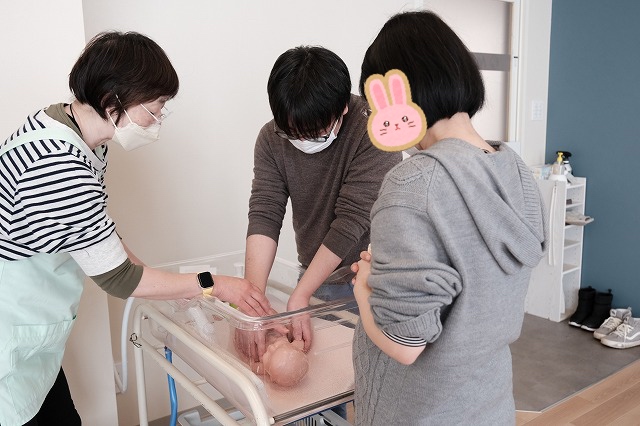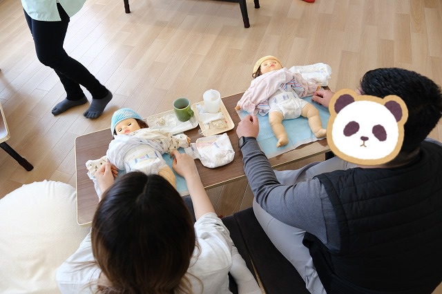 その後は、赤ちゃんのお世話の練習です。